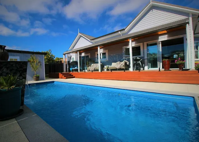 Situada a unos 5 minutos en coche del Spa Polynesian, Aristaair- Poppies Luxury Villa cuenta con una terraza con vistas a la piscina. La villa, que ofrece vistas a la piscina privada, invita a los huéspedes a visitar el Lago Rotorua, situado a unos 2 km.